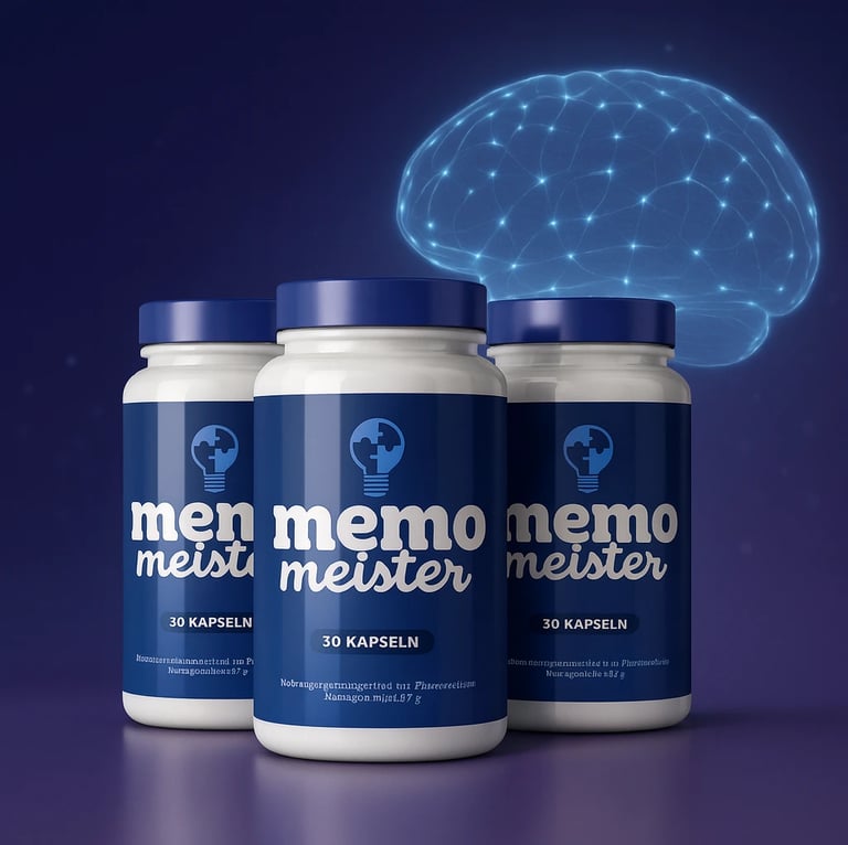 MemoMeister™ Kapseln ist ein wissenschaftlich entwickeltes Nootropikum, das die kognitiven Funktionen verbessert, die geistige Klarheit fördert und das Gedächtnis stärkt, indem es die natürlichen Prozesse des Gehirns unterstützt, anstatt auf synthetische Stimulanzien zurückzugreifen.